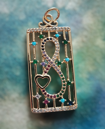 Otroligt vacker lite större guldig berlock med infinity symbol och glitter